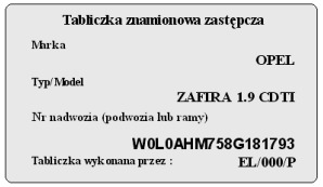 Polecamy oferowane przez naszą firmę tabliczki zastępcze. Informacja dotycząca drukowania tabliczek zastępczych. Ponieważ Rozporządzenie Ministra Infrastruktury zezwala na tabliczki zastępcze wykonane inną metodą niż tradycyjne nabijanie numeratorami i wiercenie karoserii w pojeździe klienta - udostępniliśmy opcję druku tabliczek zastępczych z pomocą drukarki laserowej (tylko!) bezpośrednio z programu !!! Dostarczamy do tego celu specjalnie przygotowane atestowane folie odporne na warunki atmosferyczne i media występujące w pojazdach (benzyna, olej, kwas, woda itd.). Tabliczki zastępcze można drukować na atestowanych materiałach (tylko i wyłącznie przy użyciu drukarek laserowych i termotransferowych - użycie innych jest niedopuszczalne). Grzegorz Krzemieniecki